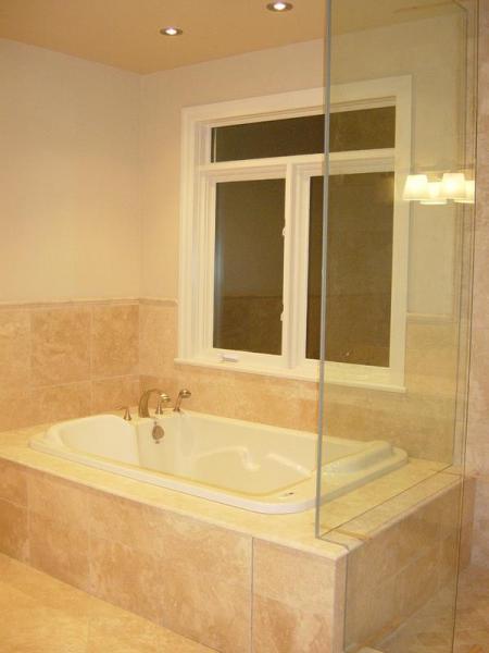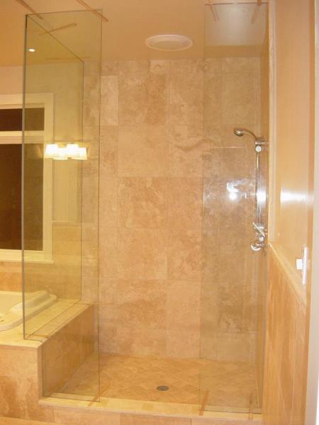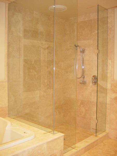 Travertine Slabs Showers With Glass Panels